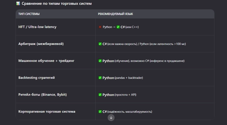 Вот ответ ИИ на простой промпт о сравнении двух языков для целей алготрейдинга: