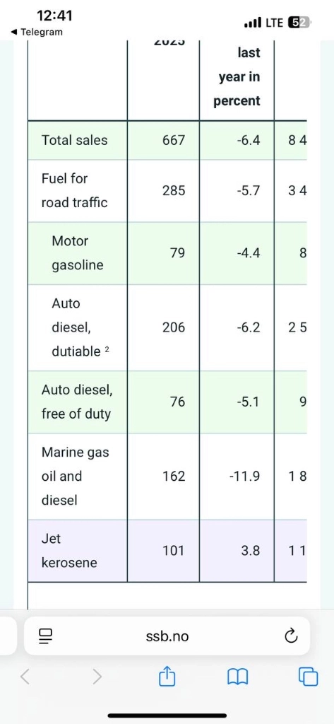 Продажи топлива в Норвегии упали год к году на 6.4% процента. В Китае вообще плато по потреблению, в следующем году увидим первое падение.