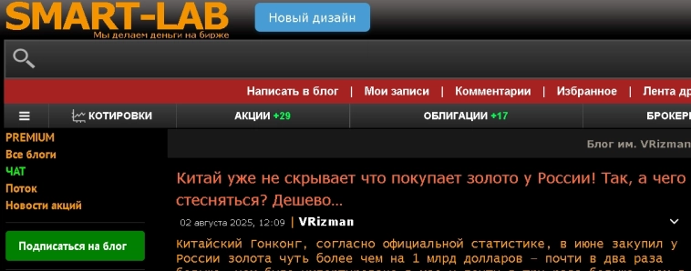 По данным Bloomberg, экспорт российских драгметаллов в Китай за первую половину 2025 года почти удвоился и достиг 1 млрд долларов. Основными причинами роста поставок золота агентство считает рекордные цены на него и высокий внутренний спрос. Между тем газета Financial Times пишет, что реальные объемы покупки золота Китаем в 2025 году могли более чем в 10 раз превысить официальные. Аналитики объясняют высокий интерес страны к золоту отказом от хранения резервов в долларах.