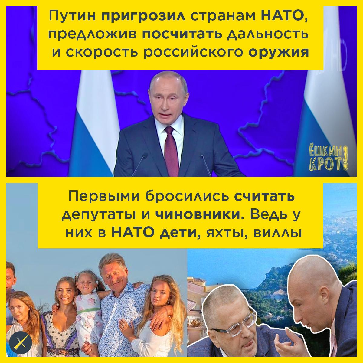 ВВП и есть проамериканский, как ты говоришь (на деле — прозападный) политик. Сам посуди. Мы распродаем страну, ничего не производим (не конкурируем), на вырученные с продажи сырья деньги покупаем западные шмотки, западную недвижимость, западные ценные бумаги (инвестируем в надежде на рост ИХ экономики, способствуя своими инвестициями этому) и так далее. Даже демографию им поднимаем — вся семья Пескова (6 детей на минуточку) живут на западе. Все квалифицированные кадры рвутся туда и уезжают, тут мы тоже помогаем западу. Чем, кроме балабольства мы западу можем быть сейчас неудобны? Ну вот взлетел бы суперджет, был бы дешевле, экономичней и надежней боинга, тогда да, тогда угроза, а сейчас то что? Гипотетическая возможность убить всю планету? Ну разве что. Собственно поэтому все, что осталось делать так это стращать подобным исходом показывая низкопробные мультики с плоскими намеками.