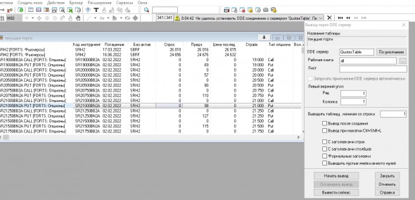 в таблице текущие торги все сделал по инструкции, но не подключается.