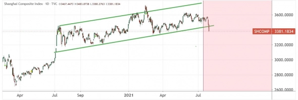 Я посмотрел на состав этого индекса от Solactive — он торгуется на немецких биржах, а в немецком я не мастак, и с историей там неудобно работать. Так что взял Шанхай композит :-) Я понимаю, что каждый чертит по разному, я редко это делаю. но если взять хаи и лоу за, напрмер, год, то я бы не сказал, что в Чайне наблюдался перегрев. Я понимаю, что это немного глупо звучит, но если бы Компартия не влезла ы процесс, то индекс бы так и елозил себе дальше. Поэтому, думаю, что если Компартия не будет усугублять ситуацию и неким образом успокоит инвесторов, то индекс быстро выкупят — там пару баров распродаж всего лишь. Но, кмк, партийным лидерам это нафиг не нужно и Чайна может вообще покатиться в тартарары