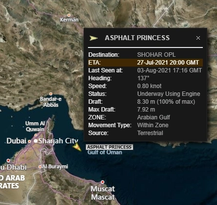 В Оманском заливе потерял управление танкерMarine Traffic: танкер Golden Brilliant в Оманском заливе «лишен возможности управляться»