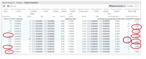 Привет! Дело в том, что краткосрочно бык напуган, ведь кукловод заливает путы черными объемами и красным интересом. Кто решится работать против куклы? Это нужно акуле, чтобы закупить больше дешевых коллов. Пока кукловоду продают лишь на долгосрочных опционах. Как только он будет доволен, то он привяжет красного вола к забору и мы увидим ровный розовый тренд к 1.19.