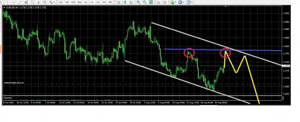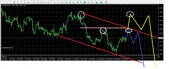Привет! Все зависит от количества южан. Если их мало, то может и сразу пойти вниз по желтому маршруту. Если же их придет много и среднесрочники в том числе, то будет организован синий маршрут к серым вершинам 1.1805. В рамках белого южного канала. Я вчера поставил стоп на 14 пунктов (к своей продаже 1.1731), чтобы переворачиваться байстопом 1.1748 в покупки до 1.18. Но потом решил долгосрочным южанином стать.
