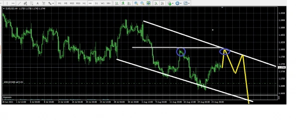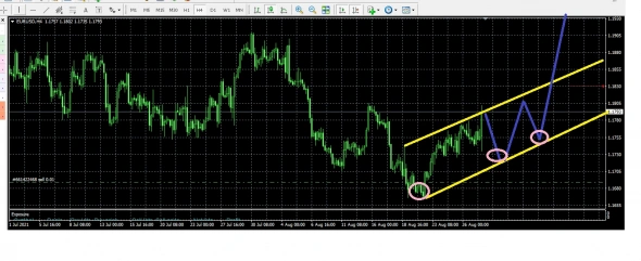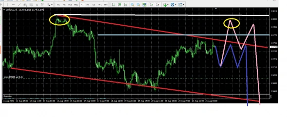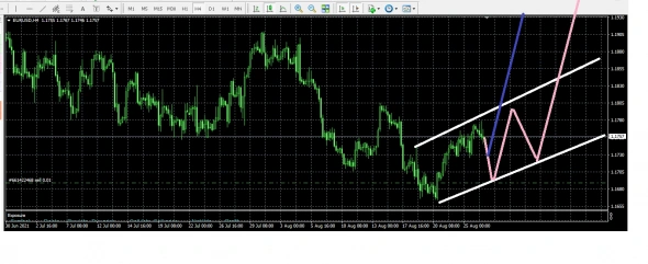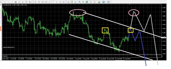 Я тоже считаю, что есть большая вероятность, что европеец все ровно отыграет и сможет сходить к розовым вершинам на 1.1805. Поэтому и держу стоп на желтом 1.1806. Белый зигзаг на юг- это правильный маневр от медведя. Но я часто видел и кривые движения. На этом рисунке- это синий канал, когда пара неожиданно разворачивается вниз. В общем, среднесрочники могут начать продавать, а краткосрочники ставят селлимит 1.179.