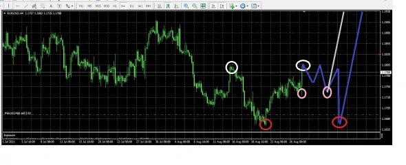 Тот пост был о тех, кто хочет краткосрочно купить с тейком на сером 1.1805, а стоп поставить на белый уровень, который ниже розовых северных поддержек. А в целом, самым правильным будет продажа со стопом на синем 1.1806. Красный вол показывает, как он собирается атаковать. Есть смысл рискнуть и не бояться зеленого маневра от вола.