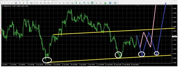 Привет! Ситуация сложная. Вариантов движения слишком много. Синий сценарий у нас на первой очереди. Тут смысл в том, что белые поддержки лопаются и пара идет вниз. Но если кукловод будет поливать коллы так, как он делал это вчера, то бык легко выскочит наверх по розовому пути. Что тогда говорить о быстром красном выстреле. Продаем 1.1761, с желтым стопом 1.1806. Ставим байстоп 1.1807, с тейком на 1.19.