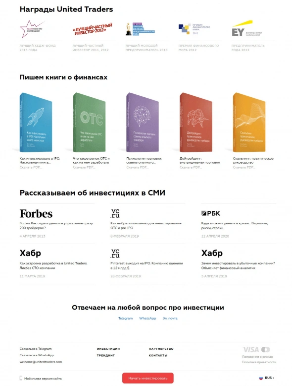 Блогер Алекс Экслер удалил рекламу проекта United Traders, который отличается отсутствием брокерской лицензии, комиссией 10% в год на активы купленные на собственные средства на некоторых тарифах, и предложениями поучаствовать в IPO суммами в 50 долларов США.
