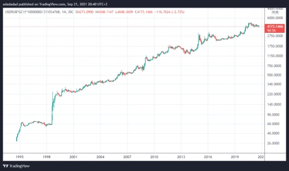 Кстати сюда бы добавить еще график доллара и золота (которое впятеро выросло в долларах с 1991)