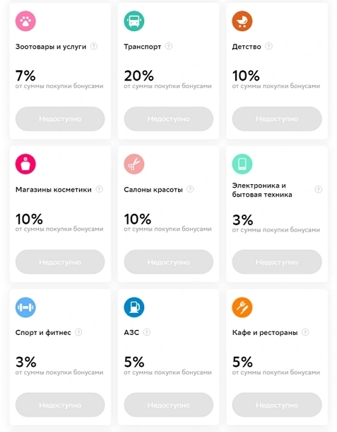 Есть ещё отдельные предложения и категории, но это только если покупать у партнеров и в категориях, которые выбираешь. В категориях по 5%.