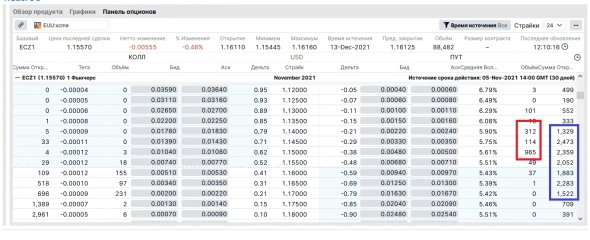 Это такой юмор трейдерский? И что? Какие проблемы у американца? Их и подавно нет, после того, как он смог выбить опору 1.1602 из под ног европейца. Я уже неделю рисую, как пара падает и пока она повторяет за моими рисунками. Но если и этого мало, то давай посмотрим на эти две опционные доски. И на краткосрочном и на долгосрочном сроках видно, как сильно кукловод болеет за американца. Поддерживает всеми силами. Это и вдохновляет продавать.