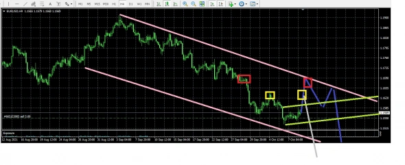 Привет! А как она может пошатнуться, если моя система пока себя оправдывает. Я торгую каналы. И как видим тут- вол поставил синий канал. Потом соорудил более маленький желтый канал, который был сломан медведем. Теперь мы упадем по серому пути к 1.12, чтобы поставить новый розовый канал. Я не говорю, что завтра, но постепенно пара будет вынуждена образовать розовый канал. Осталось лишь четвертую стену поставить. Продаем.