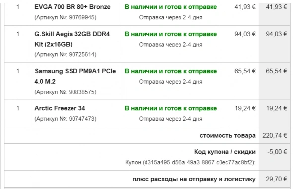 и наложенный платеж, а не уплата по карте — минус 6 евро с копейками.