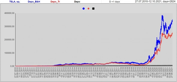 — Иногда удаётся заработать больше бай энд холд, при этом существенно уменьшив просадку. Осталось придумать как выбирать тикеры для торговли. Напишу пожалуй пару диссертаций на эту тему.