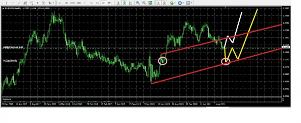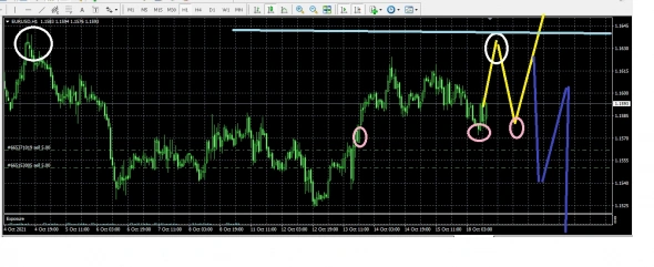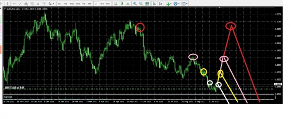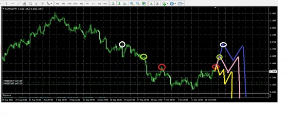 Не понимаю, какие тут 1.19 ты видишь? Смотри, как розовый мишка усиливался через образование желтых поддержек. И игнорировать этот факт нельзя, ибо это на старшем графике происходит. Ориентироваться надо на белое движение. В крайнем случае будет синее или красное движения. И 1.17 в ближайшее время- это под большим вопросом.