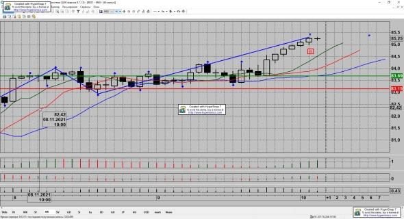 1) Вчера наконец сработал бычий дивер на 2-х часах (пробито сопротивление на 84.0). Значит ждем продолжение бычьего тренда...