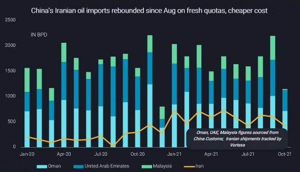 СИНГАПУР/ЛОНДОН, 10 ноября — Импорт Китая иранской нефти в среднем держался выше полумиллиона баррелей в день в течение последних трех месяцев, заявили трейдеры и компании по отслеживанию судов, поскольку покупатели считают, что получение нефти по дешевым ценам перевешивает любые риски от взлома американских санкций.
