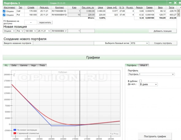 Сама идея такая – открываем доску опционов, смотрим куда улыбка и где собираются заявки, cмотрим возможна ли в течении жизни опциона высокая волатильность ( она тут очень нужна ) открываем график фьюча смотрим уровни, берем центральный страйк положим колл, берем самый дешевый пут в не денег в количеством раз в 10 больше и по цене раз в 10 дешевле центрального страйка – должен получиться хедж. Если движение пошло не туда то усредняемся, но так что бы если, что движение в строну путтов могло компенсировать хотя бы частично это усреднение , при сильном движении купленные путты должны выйти в деньги и компенсировать потери, а то и дать прибыль(возможно) Главная опасность это остаться где то по середине при приближении к эспиру и соответственно тэта… Это так быстрый набросок, какие еще тут могут быть ямы? Как близко можно держать эту конструкцию до эспира? Кидайте камнями, только по пунктам – пункт а) мудак т.к… пункт б) – молодец)))) ну и т.д.