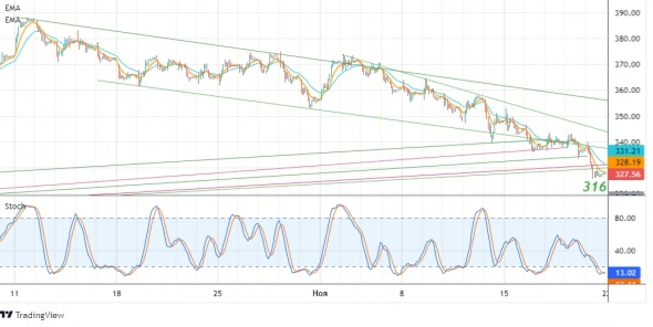 Желательно на графике нарисовать тренд и использовать мувинг. Прикладываю для наглядности 2 даунтренда на