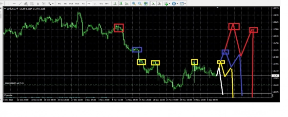Сам давно страдал тем, что льстил себе. И лишь когда победил эту излишнюю уверенность, то начал плюсовать. Это я к тому, что зарабатывайте капитал на форекс тяжелым, но стабильным трудом через опционное локирование. Это около 5% в месяц и длится около 6 месяцев. И не требует особых знаний о трейдинге. А вот прибыль можете агрессивно гонять со стопами, если вам 30% годовых мало от дельтахеджа. Это форексник должен получить 2% в неделю на том, что продаст сейчас 1.1315 со стопом на красном 1.139, выше синего и розового каналов. А 95% трейдеров, должны бояться голубой и зеленый сценарий и торговать простые и надежные стратегии.