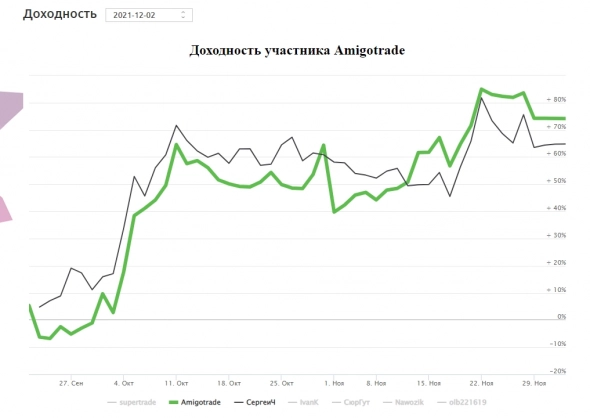 Конкурс ЛЧИ подходит к самой интересной фазе. Осталось две недели. Впереди волатильность. Татарин скоро разменяет 1000%. В первую десятку проходной балл уже больше 200%. В ней появились интересные игроки. Например Big_MaMa из почти полной просадки выбирается +356%. Интрига только начинается. Догонят ли опционщики Татарина?