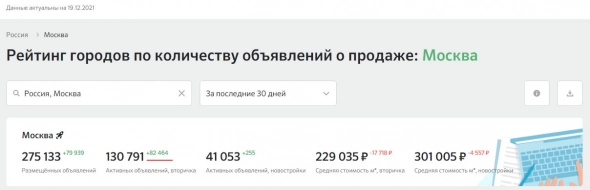 — Спрос в ноябре 2021 года вырос сразу на 12% относительно октября, главным образом за счет увеличения количества сделок в Московской области на 27%. В Москве — рост на 1,4%.