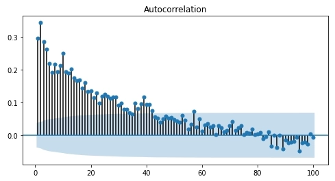Строить распад корреляции дальше 50 дней не имеет большого смысла, значения там будут около 0.