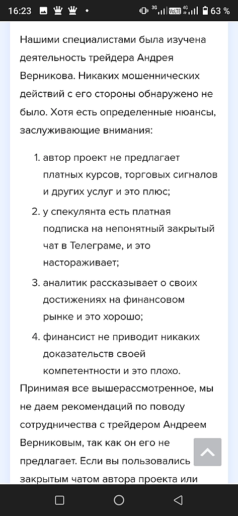 Как по мне Андрей Верников – кидала голимое. Отдал ему 60 кусков за общее обучение. На словах он успешный трейдер, а на деле полный ноль. Никакой конкретики в теории он не давал. Общие фразы и обещание быстрого богатства. На вопросы как снизить риски уводил разговор в сторону. В общем как по мне я выкинул деньги на ветер.
