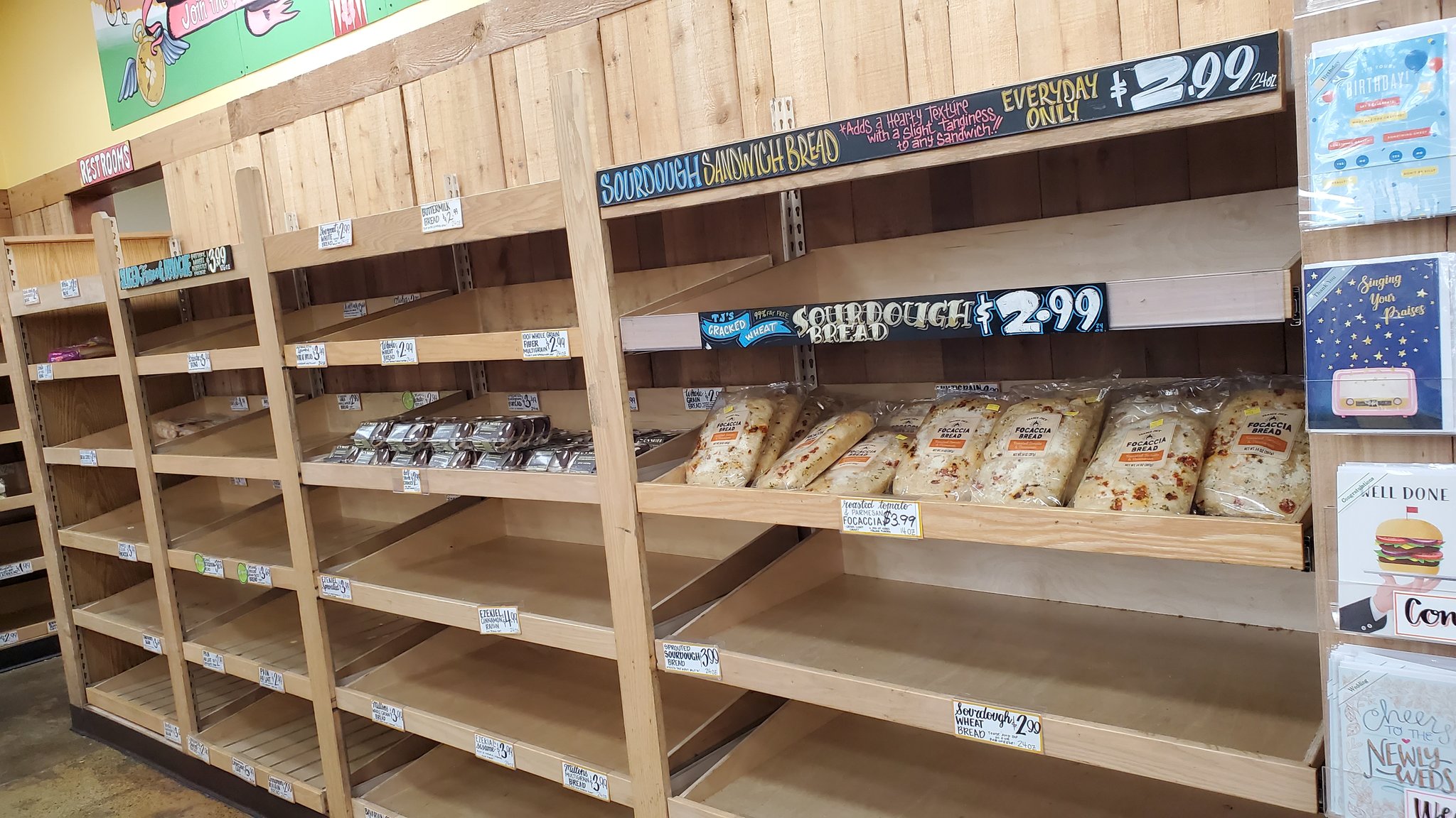 Пустые полки в trader Joe к сожалению не редкость. Часто там закупаючь. И причина этому в том что все трайдертджо это их торговые марки. И вот когда хоть что то с купят это привозят только завтра. У них в магазинах почти нигда нет большого склада.