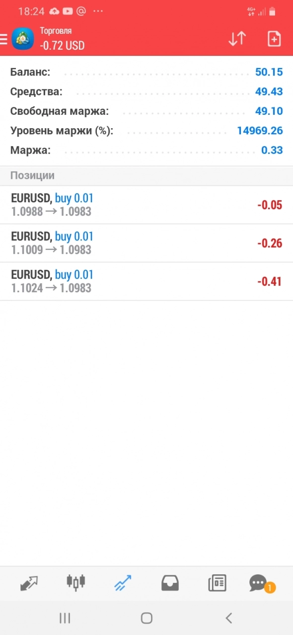 Итак, мы приносим на счет лишь 5% от депо, на первом этапе. Это 50 центов. К ним получаем 55% бонуса.