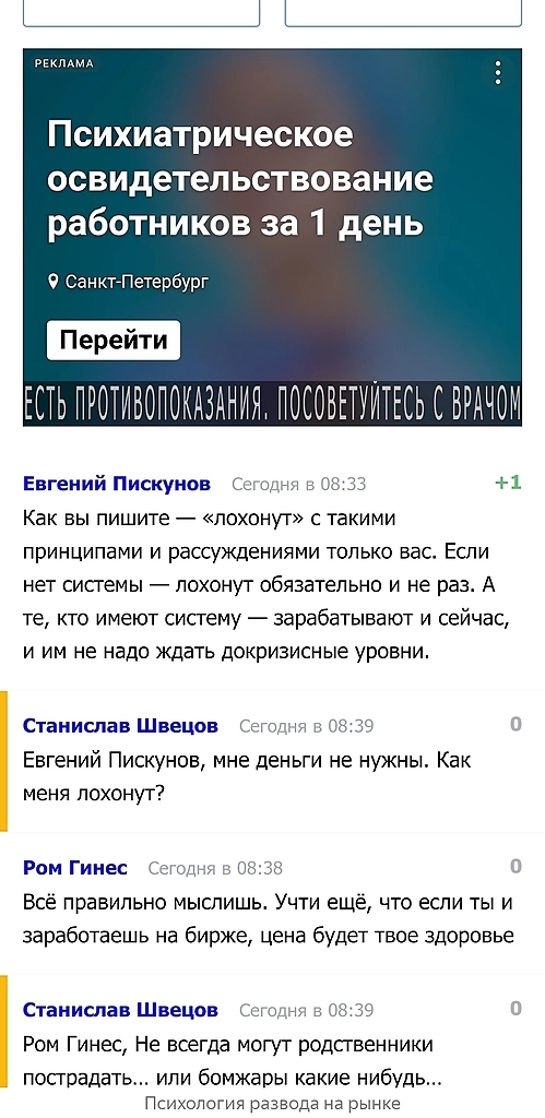 Что касаемо биржи, у меня опыта торговли никакого нет. И я стою на своей позиции, что нужно торговать на приличную сумму от 1 млн рублей и только без кредитного плеча. Хотя мысленно никто меня на это не подбивает сейчас, однако в прошлом замечал небольшие попытки. Видел статьи здесь как люди после Украинских событий потеряли по 10 млн рублей из-за плеча. А есть знакомые кто торгует без плеча и готов ждать 5-10 лет возвращения к докризисным уровням. У этих людей биржа это не основной источник дохода, есть другие на что живут. Если вы думаете, что можно зарабатывать на бирже, тогда вас точно лохонут и заберут деньги. Однако я не понимаю, что в этом плохого, если бы система давала дисциплинированным людям деньги с биржи, при условии грамотных вложений будущей прибыли.