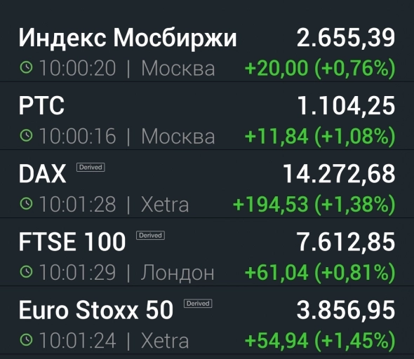 Доброе утро! И всё-таки в четверг всё зазеленело, а по некоторым направлениям прямо очень: РТС(