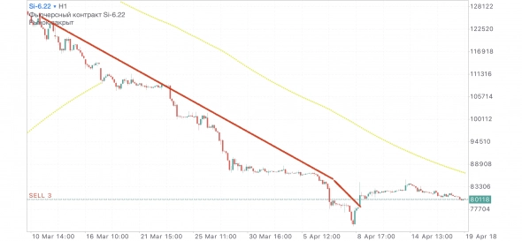 Решил накинуть подобное на график доллара, к сожалению на телефоне прямыми нарисовал, но суть примерно та же. Ну так вот даже если купить примерно в этом месте ( цена 77 ), рост не дают и тот же доллар пошел в сторону 70, а самое обидное на 70 если начнут откупать ( скорее так и будет ), то подобные сделки не принесут прибыли.