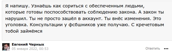Потом в чате Цеха инвесторов, я написал, что материалы непроработаны, но самолюбование и нарцисизм зашкаливает, курс не понравился — тоже вроде осокрблений нет. Больше похоже на критику.