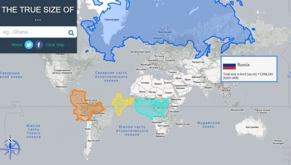 На экваторе размеры стран не искажаются. Интересно и познавательно))