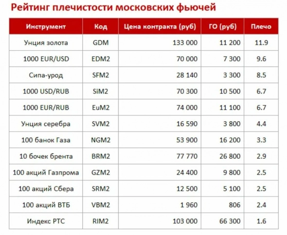 А что не так в приведенном примере? Предположим 23-го на счете было 180 000 руб., покупаем 10 фьючерсов сбербанка по 18 000 руб. (получается, что «без плечей»). На следующий день цена падает до 6 500, стоимость собственных средств (180 000 руб. минус 115 000 вариационной маржи) при ГО 15 000 руб. за контракт хватает на поддержание позиции только 4 контрактов. Брокер маржинколлит, т.е. продает шесть контрактов по минимальной цене, и даже если бы потом цена вернулась к цене покупки (18 000 руб. за контракт), то 38% денег было бы потеряно.