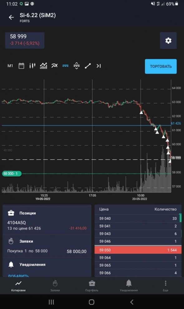 100 контрактов в минусе сейчас(от 59) буду держать до 72. депо позволяет полностью покрыть (не парюсь)