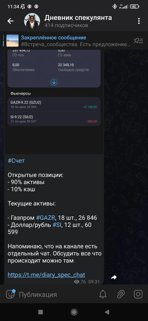 Историю всех моих сделок можно посмотреть в телеграм канале «Дневник спекулянта»