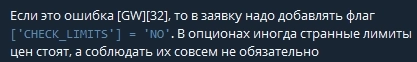 Нужно просто снять галочку в окне заявки по лимиту цены в квике!!!
