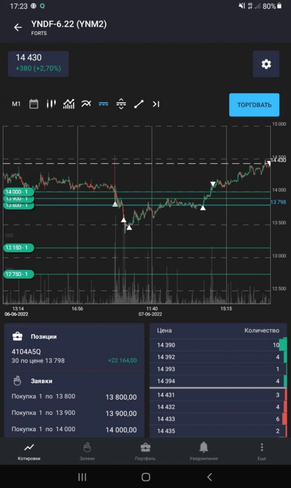 Дальше без объёма падаем, для меня самая большая загадка — это где маржин-кол всех тех, кто заходил от 20 000 от 17 000? Расчет был на дневной клиринг, но никакого массового закрытия не было. Глобально по Яндексу расчет на лонг.