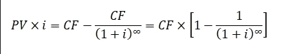 Смотря на эту формулу, получается интересный вывод: i – для бессрочной облигации одновременно является текущей доходностью и «доходностью к погашению» (термин – который используется в облигациях). Иными словами, используя ее мы можем либо найти приведенную стоимость облигации, либо определить то, что называют «доходность к погашению», хотя формально это облигация никогда погашена не будет.