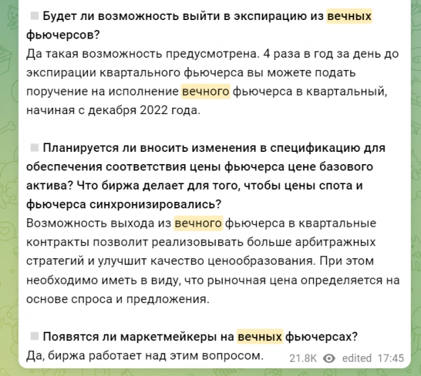 Stanis, так вот МБ пытается сохранить невинность, но берет инструмент чисто кухонный. Вечный фуч — это в чистом виде CFD. Он на всех кухнях управляется локальным линейным маркетосом и очень слабо привязан к курсу спота. Свопы там начисляют чисто номинально, чтобы сравнять потенциал шортистов и лонгистов.