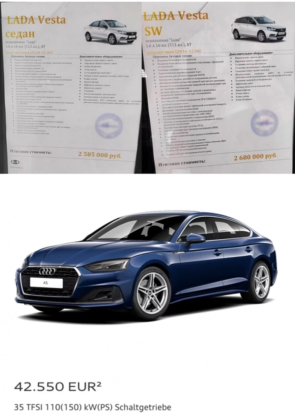 Автомобиль Lada Vesta сейчас продают в Москве за столько, сколько в Германии стоит Audi A5 Sportback". И не очень это смешно…
