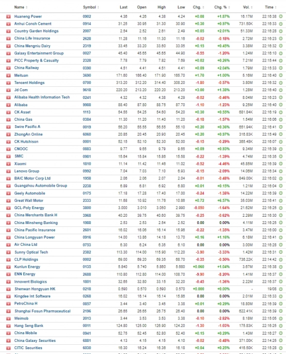 Тем не менее, акции Гонконга — зелёные, в основном.