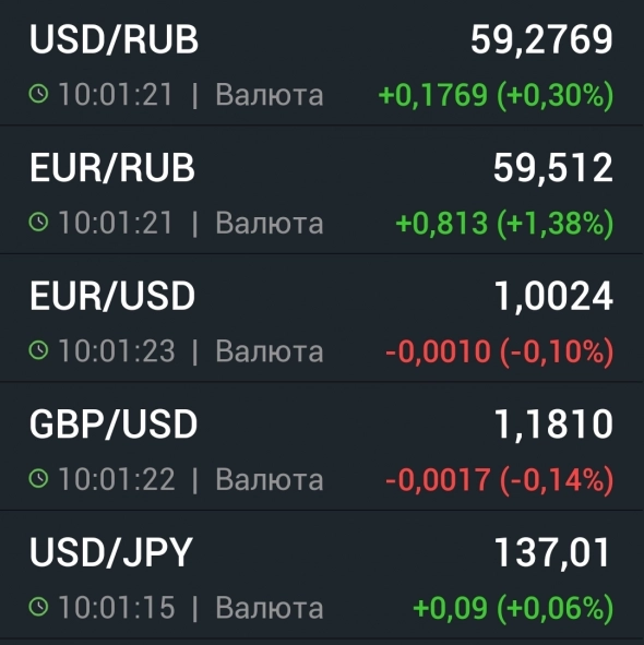 -1,29%). Но справятся сами я надеюсь, не детский сад. Кое-какие события в пятницу кроме вышеупомянутого произошли и заслуживают хотя бы минимального внимания. Российский рубль продолжил двигаться вниз и пятница была закрыта и по доллару и по евро ниже 60. Кроме того пара EUR/USD вновь рвётся к паритету и от этого её отделяют сущие крохи.