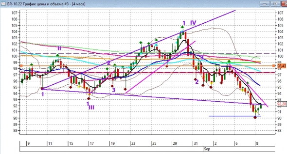 как написал выше жду или пин бар или 1-2-3 — с точкой 2 в районе 94-95 и откат к точке 3 в район 92, вот там (если раньше не будет красивого пин-бара) и буду искать вход. Там еще и трендовая, на пробой которой я торгую (этот паттерн раньше описывал). В общем сентябрь уже дал + 6% к спекулятивной части депо, и дальше обещает быть интересным.