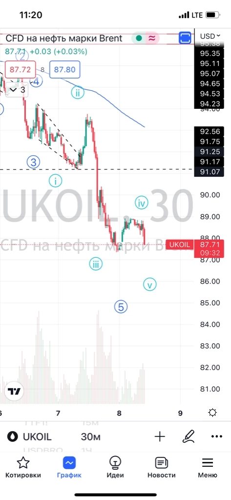 Продавец 88,90 с 4:00 до 7:30 набирал позицию и повез цену вниз.