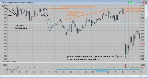 Вот вчерашняя сделка. Ng такой инструмент — мне на нем трудно торговать, но интересно, самые результативные сделки совершенны здесь.