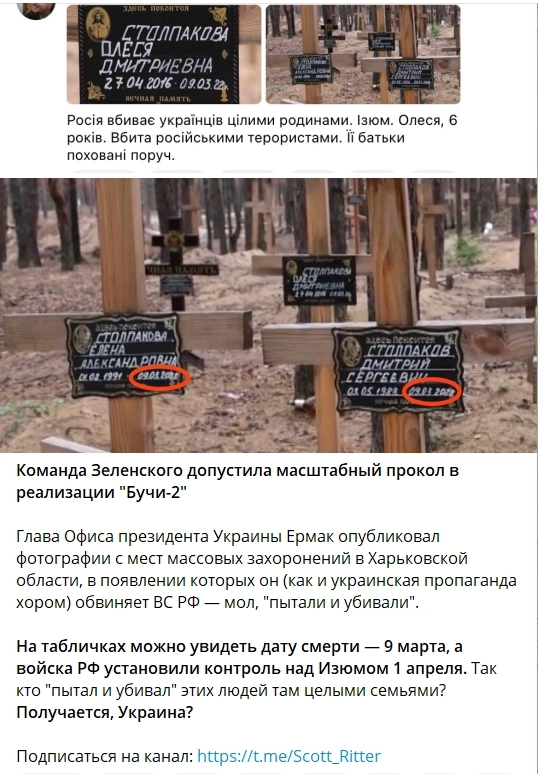 А теперь скажи мне. Если ВС РФ только 1 апреля захватили город, то от чьих снарядов все эти люди погибли? Украинцы сами себя обстреливали?